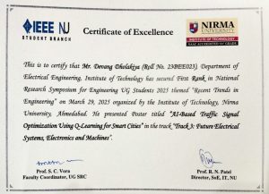 Mr Devang Dholakiya, BTech student of Electrical Engineering Department won the 3rd prize in Datathon (Software Track) at IEEE Sampark’25. Congratulations for the achievement.
